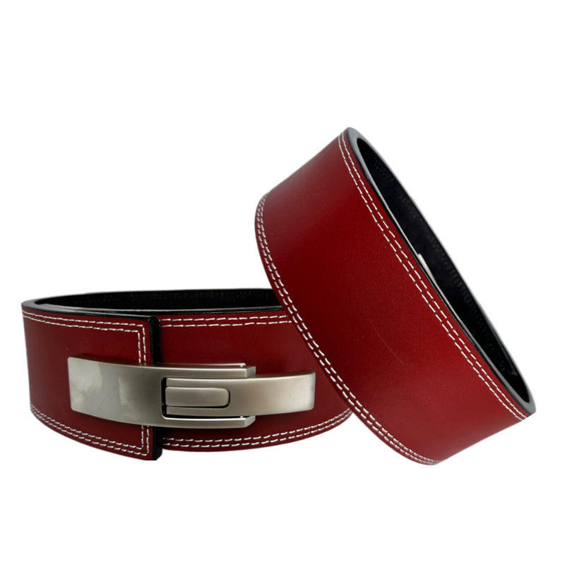 Our belt has a genuine full-grain leather construction, which makes it ideal for serious weight lifting and fit for practically any type of exercise that requires a secure and stable hold. The leather belt features double leather construction for extra support with its reinforced waistline, stays strong and durable with proper care, and attaches to your pants with its buckle.